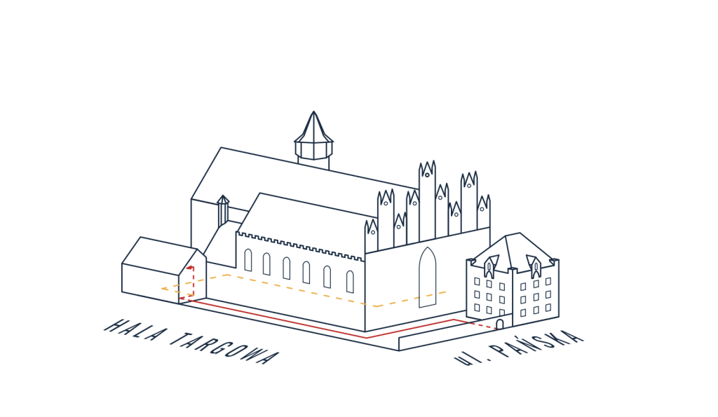 Aby trafić do domu duszpasterskiego należy przejść przez furtkę w murze od ul. Pańskiej, a następnie kierować się wzdłuż kościoła (plan poniżej).